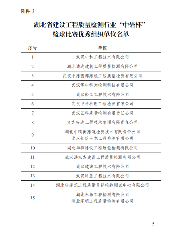 此次籃球比賽豐富了我省建設(shè)工程質(zhì)量檢測(cè)行業(yè)的員工生活,培養(yǎng)了檢測(cè)人“頑強(qiáng)拼搏、奮勇?tīng)?zhēng)先”的體育競(jìng)技精神,賽出了水平,賽出了風(fēng)尚,賽出了友誼,加強(qiáng)了同行之間的交流、促進(jìn)了合作,為共同推動(dòng)湖北省建設(shè)工程質(zhì)量檢測(cè)行業(yè)的高質(zhì)量發(fā)展作出了貢獻(xiàn)。