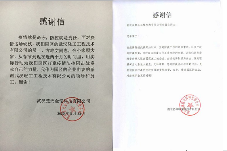 二、方雄文同志除了不忘公司使命,幫助公司盡快復(fù)工復(fù)產(chǎn)外,還不忘社會責(zé)任,積極為工業(yè)園區(qū)協(xié)誠瑞榮公司、楚天金銘科技公司、北方測盟(武漢)公司等11家企業(yè)辦理復(fù)工復(fù)產(chǎn)手續(xù),并耐心細致的為工業(yè)園區(qū)各企業(yè)共200多人做好各項復(fù)工復(fù)產(chǎn)所需的政策解讀,做各種力所能及的事情,最后得到大家的高度認可,工業(yè)園區(qū)內(nèi)相關(guān)企業(yè)對其進行了表揚。